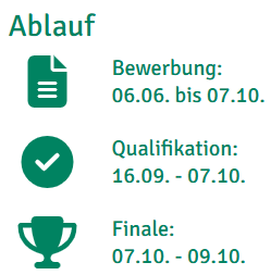 In der Qualifikation kann von Dienstag, 16. September um 12 Uhr bis Dienstag, 7. Oktober um 12 Uhr je Königspaar täglich per Klick auf der Seite Ihres Königspaars abgestimmt werden.